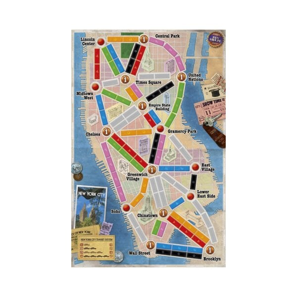 Welkom in het Manhatten van de jaren 60 met Ticket to Ride New York! Geniet van het adembenemende uitzicht vanaf het Empire State Building (destijds de hoogste wolkenkrabber ter wereld) of maak een wandeling door het prachtige Central Park. Bezoek Times Square, Brooklyn en alle andere toeristische locaties.Tijdens deze kortdurende variant uit de Ticket to Ride spellenreeks racen de spelers tegen elkaar in de drukke straten van New York City om de meest prestigieuze locaties te bezoeken en om hun bestemmingskaarten te voltooien. Voor het bezoeken van een aantal locaties zijn bonuspunten te verdienen, waardoor jouw rit door New York nog spannender wordt.